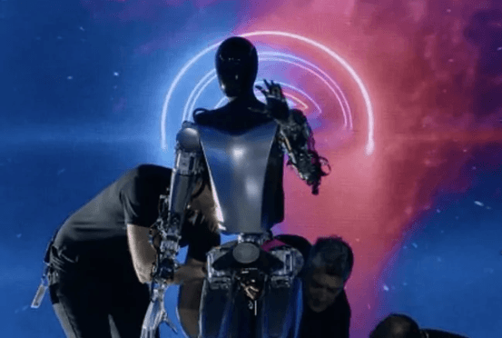 Tesla brought on stage its first generation Optimus robot after presenting Bumble C. However, since Tesla couldn't get the new one to walk yet, it didn't lead with it and showed a rougher prototype first.